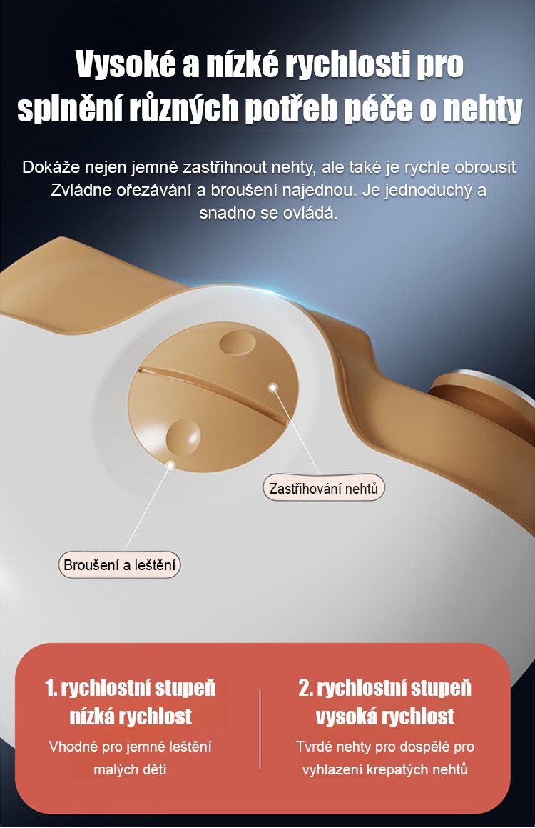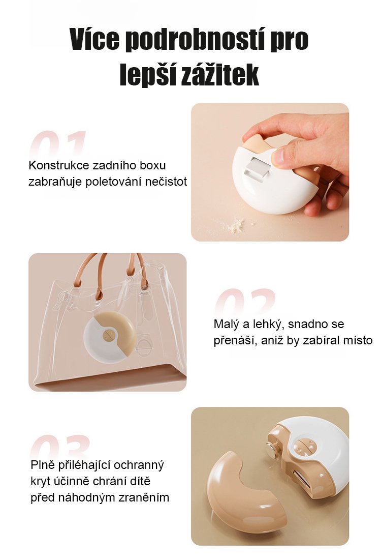 Tichý design, bezpečnější pilování nehtů, nechte krásu být bez hluku!
